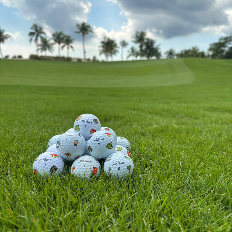 Sunday9 believes that golf is about so much more than the scorecard. Whether you're a weekend warrior or playing in the monthly medal, golf is a chance to forget your worries and have a good time with great friends. Our balls are designed for exactly that. Good fun without compromising quality. We offer Titleist Pro V1s with unique designs to brighten up your round.